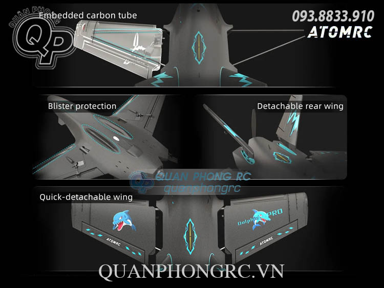 Máy bay cánh bằng Dolphin Pro là phiên bản nâng cấp của mẫu Dolphin nổi tiếng, được tối ưu khí động học với khả năng ổn định bay tốc độ thấp vượt trội. Máy bay được trang bị động cơ 2807 1100KV và ESC BLS 6S 50A. Phần mũi của Dolphin PRO FPV có thể gắn hệ thống truyền hình ảnh DJI O4 Pro/O3.