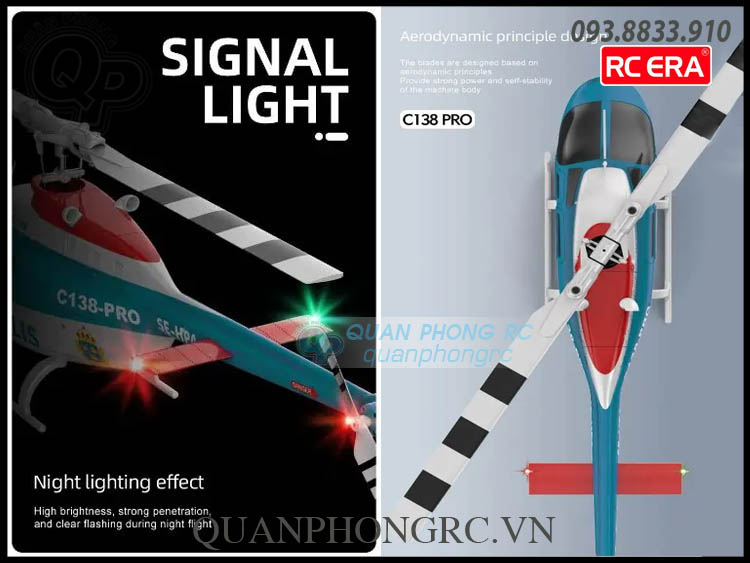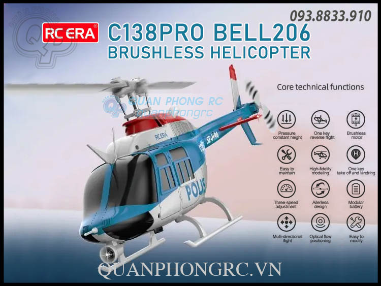 Máy Bay Trực Thăng C138PRO Bell 206 6CH 2.4G RC Brushless Helicopter RTF
