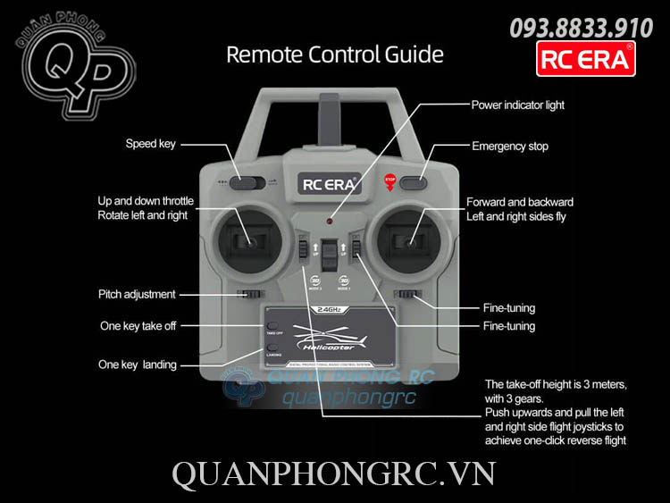 Trang bị nhiều tính năng bảo vệ: cảnh báo điện áp thấp, khóa động cơ, chống mất điều khiển, chuyển đổi tốc độ servo lớn/nhỏ, cất cánh một chạm, hạ cánh một chạm.