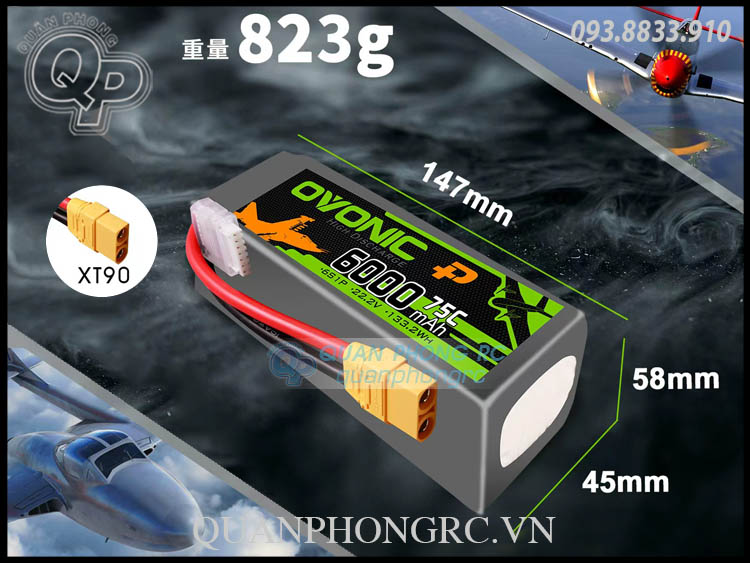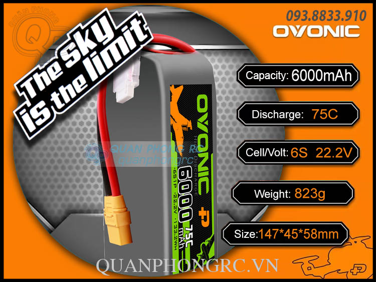 Ovonic 6000mAh 6S 75C 22.2V LiPo Battery XT90 Plug
