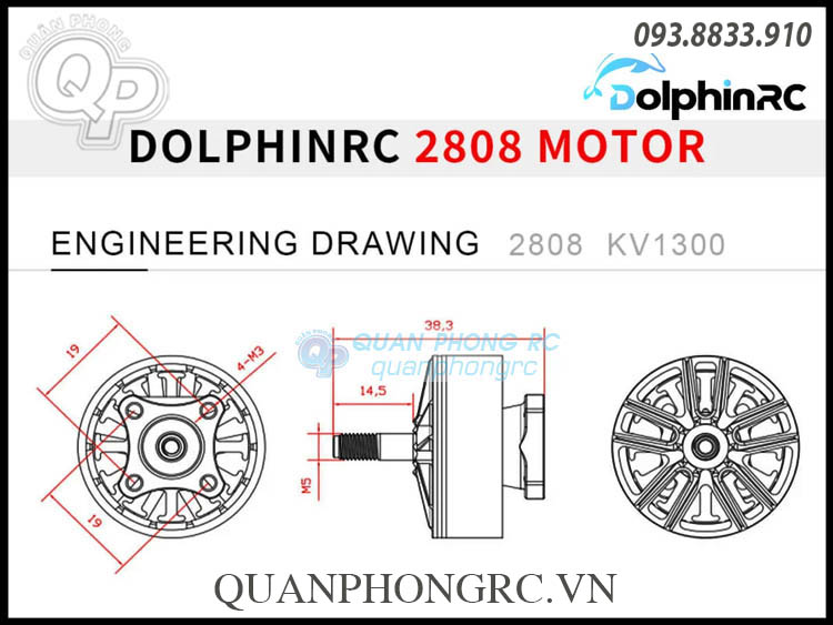 Motor DolphinRC 2808 1300KV Brushless Motor