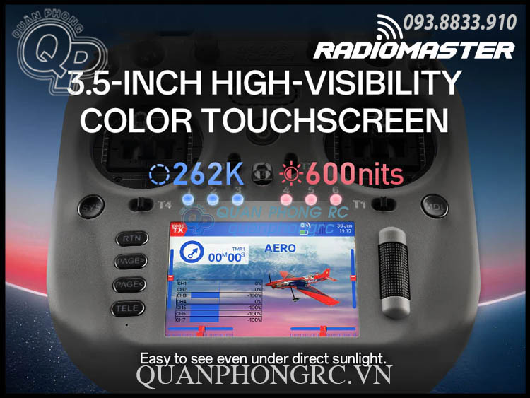 Trải nghiệm hình ảnh rõ nét trên màn hình cảm ứng IPS 3.5 inch, hiển thị 262.000 màu với độ sáng 600 nits, dễ nhìn ngay cả dưới ánh sáng mặt trời. TX15 được trang bị gimbal cảm biến Hall V5.0 với sáu tùy chọn màu sắc nổi bật, cùng hệ thống làm mát tiên tiến, cổng USB-C để sạc, kết nối mô phỏng (SIM), cập nhật firmware và bộ nhớ tốc độ cao, đảm bảo hiệu năng ổn định. Ngoài ra, bạn có thể thay đổi công tắc vai – chọn giữa công tắc nhấn (momentary) hoặc công tắc hai nấc (2-position) tùy theo phong cách điều khiển. Nếu bạn muốn phiên bản cao cấp hơn, hãy xem TX15 MAX.