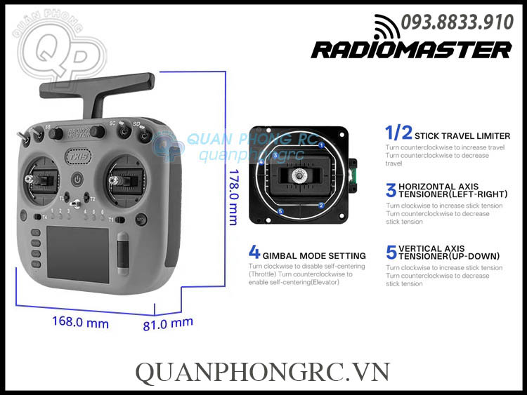 Gimbal chính xác: Gimbal cảm biến Hall V5.0 cho cảm giác điều khiển mượt mà.