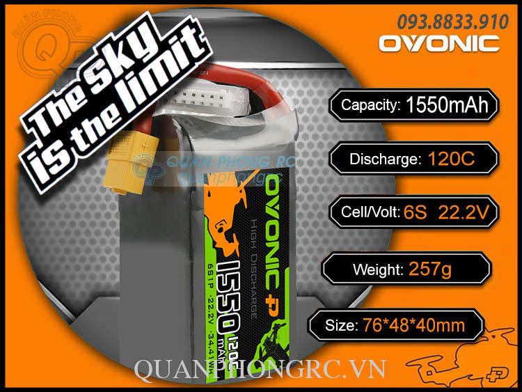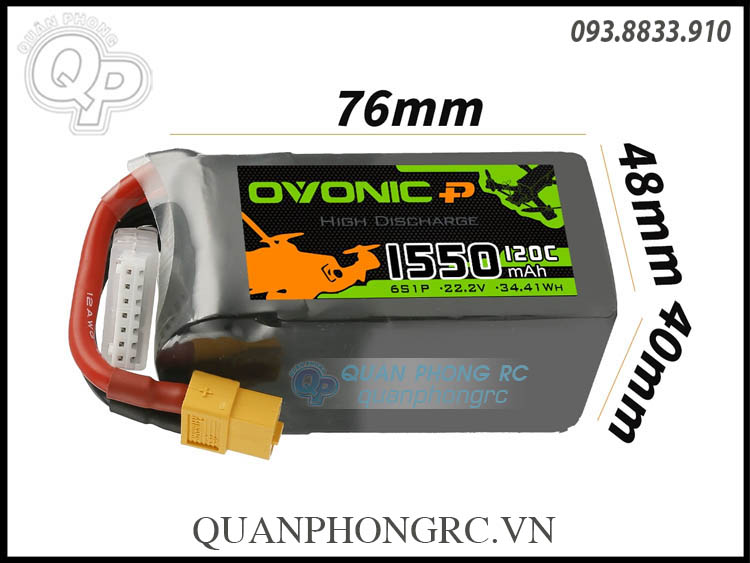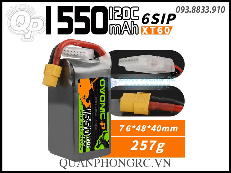 Ovonic FPV 1550mAh 6S 120C 22.2V LiPo Battery XT60 Plug
