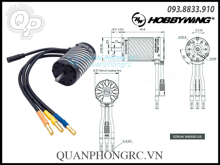 HobbyWing EZEUN 3665 SD G3 2400KV Sensored Brushless Motor