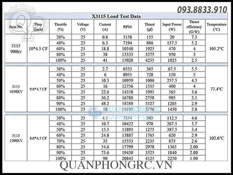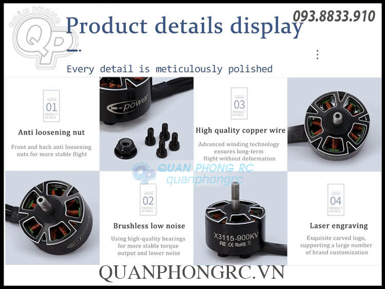 1 × Động cơ không chổi than E-Power X3115 900KV