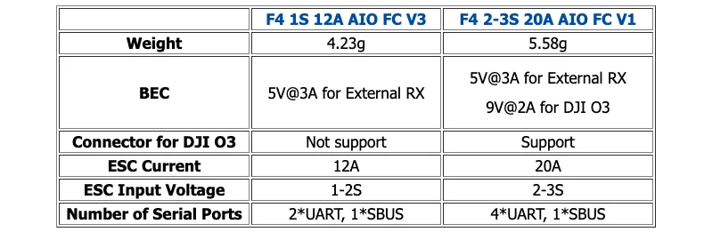 F4 2-3S 20A AIO FC V1 is specifically designed for HD VTX, utilizing 2-3S batteries for enhancing the flight experience. It features a dual BEC solution that delivers stable power outputs of 9V@2A for DJI O3 and 5V@3A for external devices. With a 20A ESC, it enables agile flight and increases dynamic. And connector for DJI O3 HD VTX and USB port for easy installation and maintenance. Ideal for HD VTX whoop enthusiasts, offering a heightened level of professionalism and convenience with this FC option.