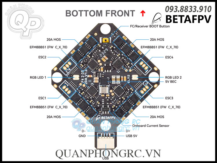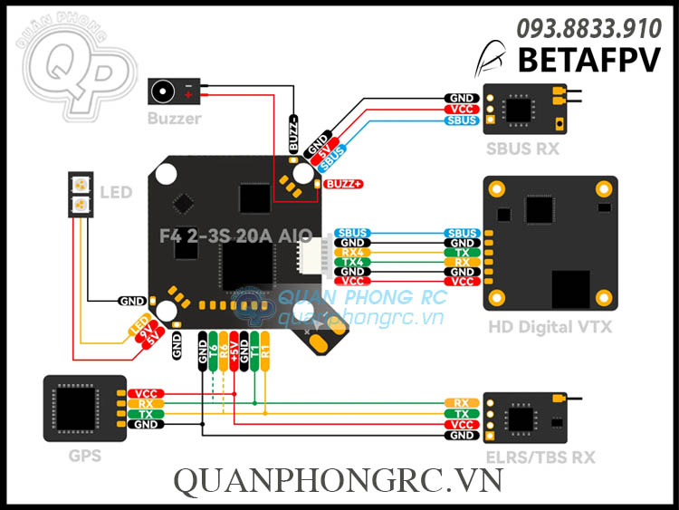 - It features an STM32F405RGT6 chip, Integrate Serial ELRS 2.4G receiver, 16M black box, barometer, current meter, reserve 3 complete serial ports and a standard SBUS, support GPS, HD VTX, external receiver, and other equipment.