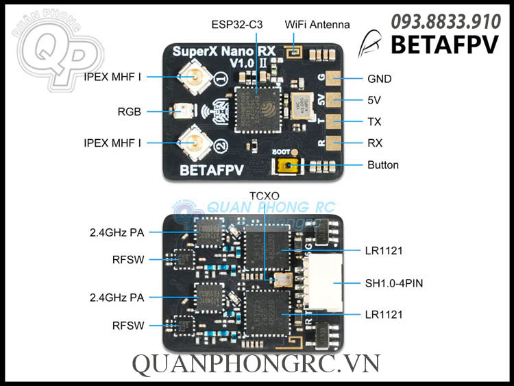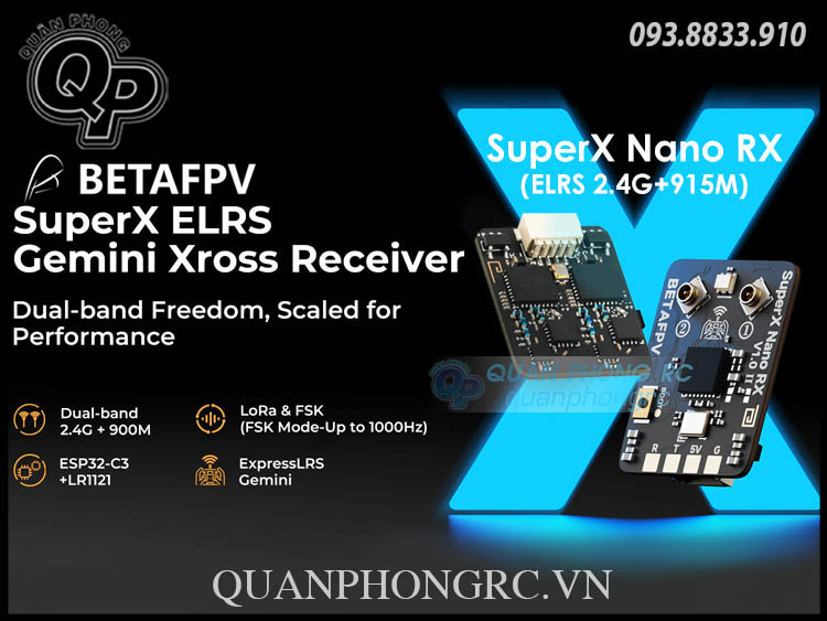 Được trang bị chip RF LR1121 của Semtech và ESP32-C3 của Espressif, SuperX mở đầu cho receiver Gemini Xrossband đầu tiên của BETAFPV – làm chủ cả hai băng tần 900M (868/915MHz) và 2.4G thông qua các chế độ LoRa và FSK 1000Hz siêu nhanh. Vượt qua cổng đua và những hành trình tầm xa với độ tin cậy tín hiệu vững như đá, nơi mà những link khác dễ dàng bỏ cuộc. Hãy chọn SuperX Nano với khả năng dual-band thực thụ hoặc SuperX Mono với khả năng chuyển băng linh hoạt cho hiệu năng được tinh chỉnh tối đa trong mọi kịch bản bay.