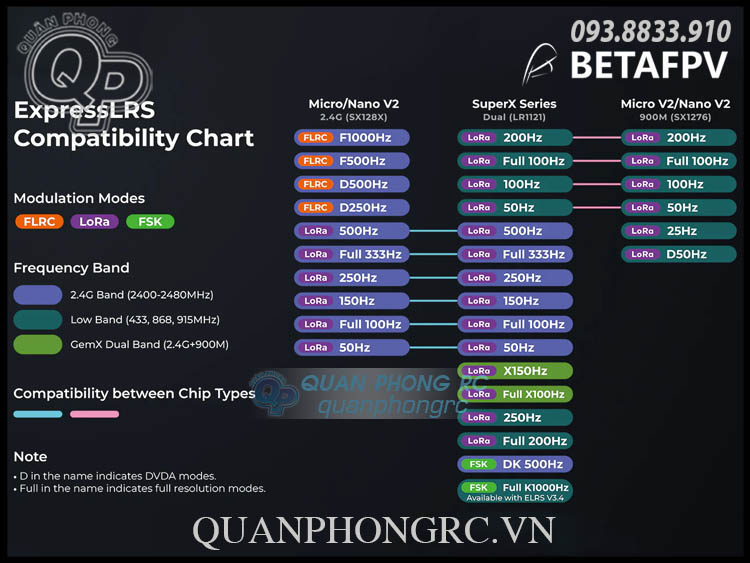 | Công suất Telemetry | 20dBm | 20dBm (2.4G) / 17dBm (900M) | – |