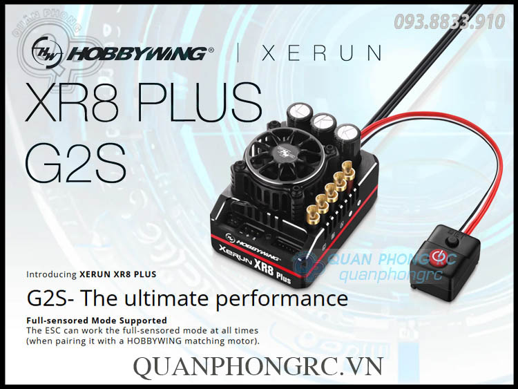 Đây là bộ điều tốc Hobbywing XERUN XR8 PLUS G2S 200A Sensored Brushless ESC màu đen dành cho xe RC tỉ lệ 1/8. Thiết kế quạt không khung (frameless fan) là công nghệ đã được cấp bằng sáng chế. Hệ thống tản nhiệt truyền nhiệt nhanh từ bên trong ra vỏ nhôm tản nhiệt tích hợp, kết hợp luồng gió lớn từ hai bên quạt và đế dẫn nhiệt bằng đồng gắn vào bảng công suất bên trong. Tất cả tạo thành một hệ thống tản nhiệt độ tin cậy cao, đảm bảo ESC luôn trong trạng thái nhiệt độ tốt.