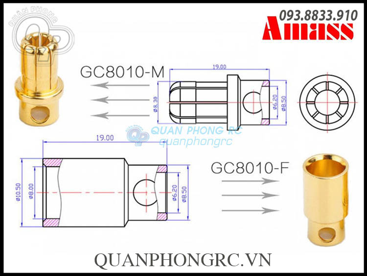 - Tên sản phẩm: Đầu nối Chuối AMASS 8mm