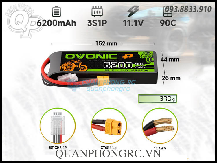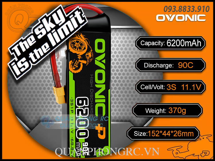 Ovonic 6200mAh 3S 90C 11.1V LiPo Battery XT60 Plug