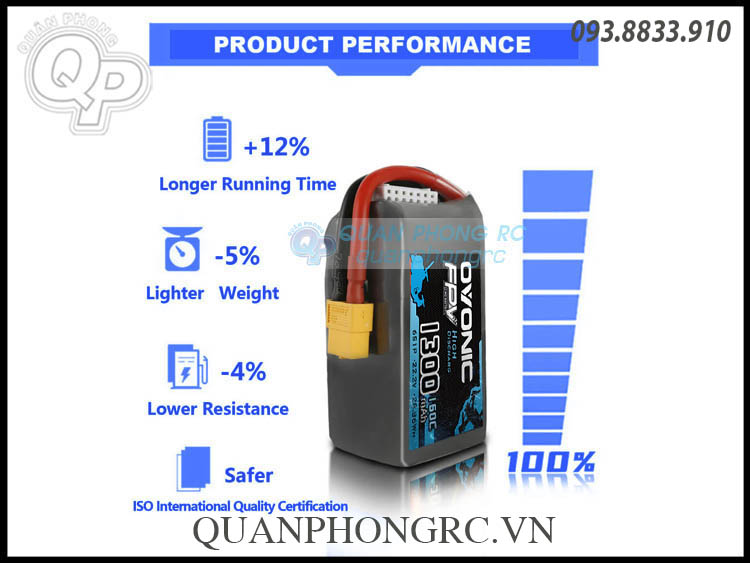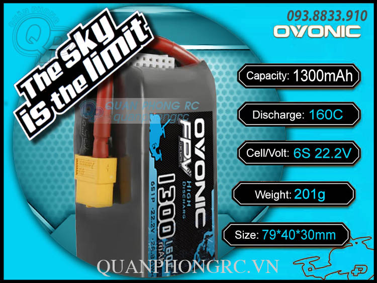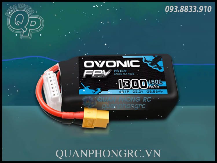 Ovonic FPV Xanh Dương 1300mAh 6S 160C 22.2V LiPo Battery XT60 Plug