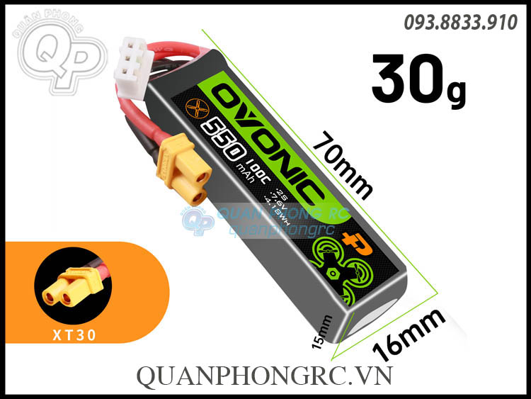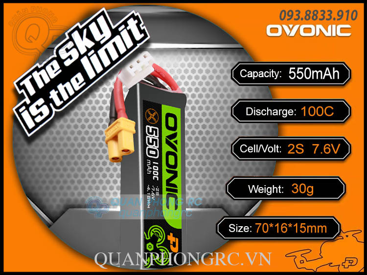 Ovonic PRO 550mAh 2S 100C 7.6V LiHV Battery XT30 Plug