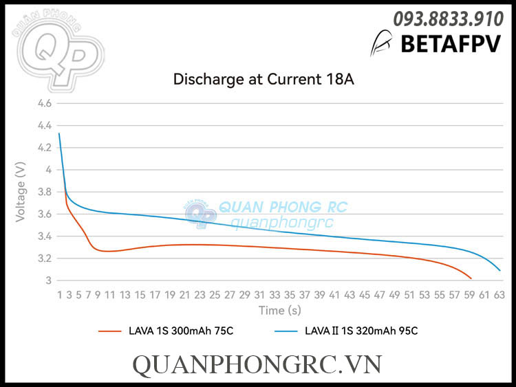 Nhờ nâng cấp vật liệu lõi, LAVA II 1S đạt dòng xả 95C, tăng 26.7% so với 75C trước đây, mang lại công suất mạnh hơn đáng kể. Điều này giúp điện áp xả cao hơn khoảng 0.1V và ổn định hơn, đảm bảo hiệu năng nhất quán khi bay.