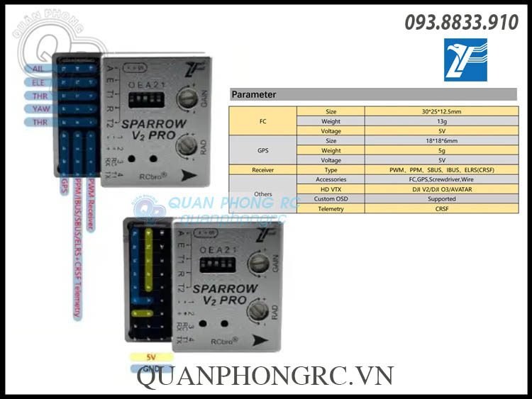Mạch Cân Bằng LEFEI RCBro Sparrow V2 PRO Flight Controller (+ U7 GPS)