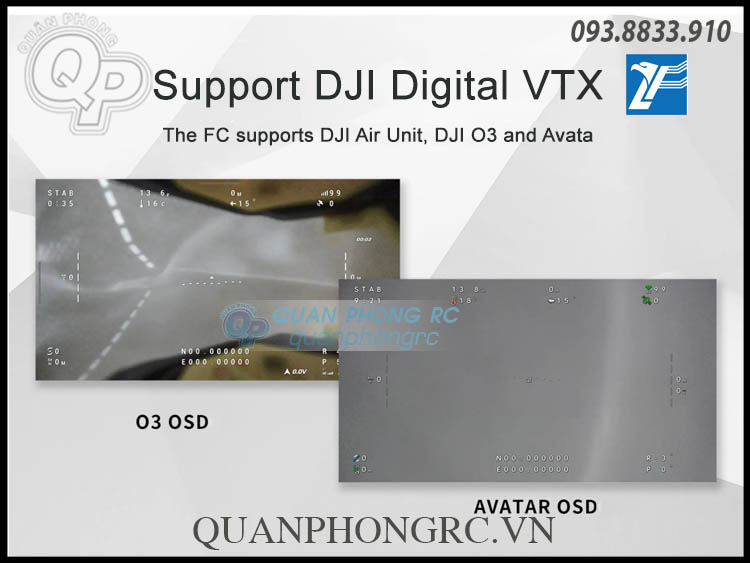 Hỗ trợ Digital OSD: tích hợp mượt với DJI O3 Air Unit, Caddx Nebula và hệ thống truyền hình ảnh số AVATAR để hiển thị thông tin bay lên màn hình.