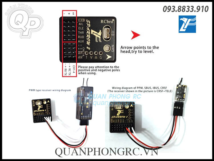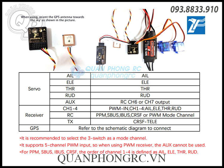 Loại receiver hỗ trợ: PWM / PPM / SBUS