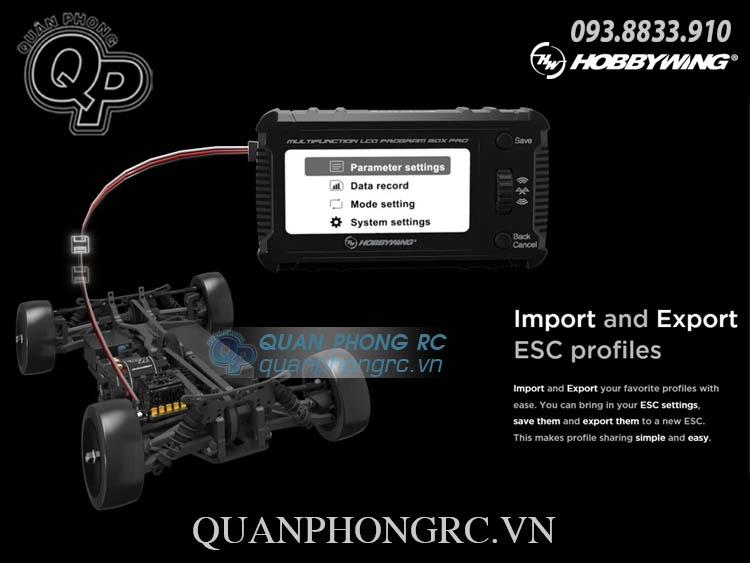 - As an independent parameter adjustment device, directly use the built-in LCD screen to display, set, and share ESC parameters (import).