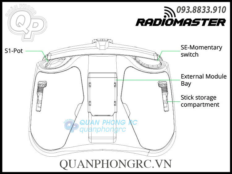 Khe cắm mô-đun: Kích thước Nano (tương thích với RadioMaster Nano, TBS Nano Crossfire/Nano Tracer)