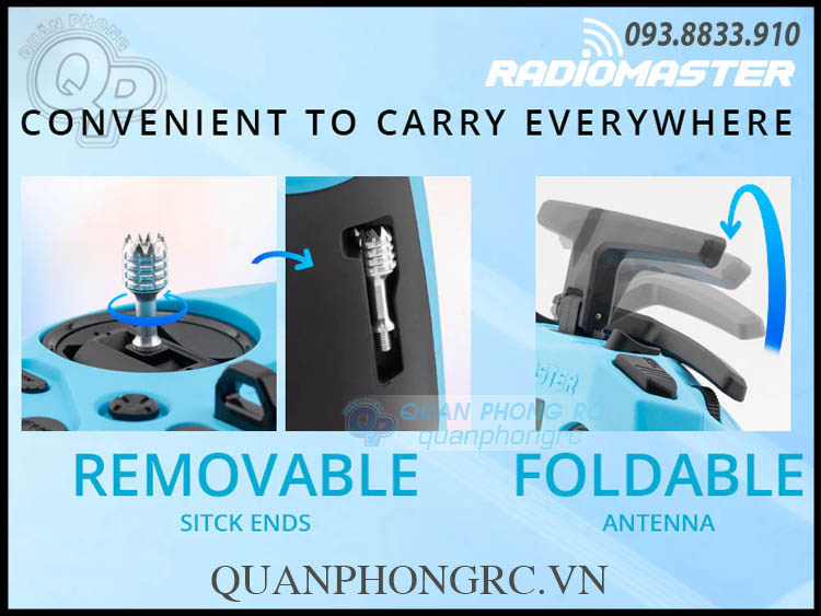 Thiết kế nhỏ gọn, nhẹ, với ăng-ten có thể gập và cần điều khiển có thể tháo rời